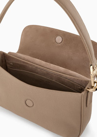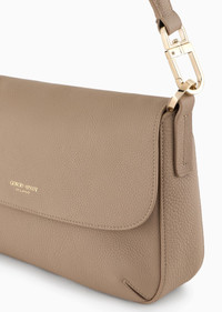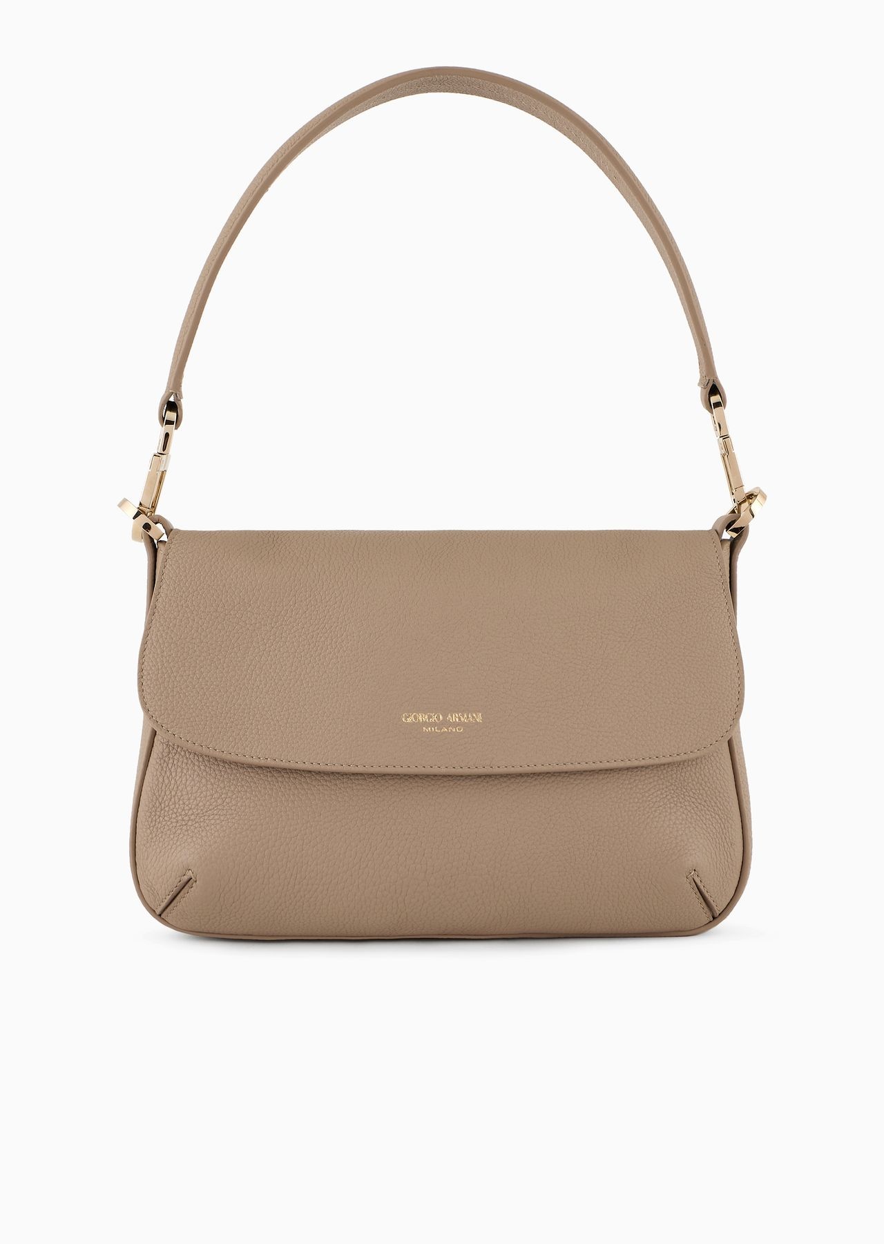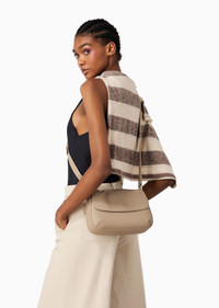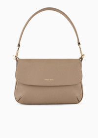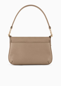 A new, sophisticated interpretation of the iconic la Prima bag created by Giorgio Armani in 1995, with a softer shape. This small pebbled-leather baguette bag recalls the world of tailoring, with deconstructed lines highlighted by topstitched details that accentuate its unstructured softness that is so closely associated with Armani ready-to-wear. Brightened by metal clips that allow for a quick change of shoulder strap for a crossbody option, this baguette encases a suede-lined interior with a zipped inner pocket, patch pockets closed by a magnetic clasp and has a convenient pocket on the back, perfect for holding a mobile phone. An exceptional accessory, in which every detail upholds the elegant and refined appeal of the brand’s iconic bag. Product Code: Y1B080YWJ3A180338 Details Composition 100% Calf-skin leather Flap closure with covered central magnetic button Nappa-leather handle with clip detachment Second nappa-leather shoulder strap for wearing two ways Lined with matching suede Outer pocket with zip Light gold plating One exterior back pocket with press-stud closure Heat-stamped Giorgio Armani logo Measurements: 26.5 x 18.5 x 5.5 cm Made in Italy