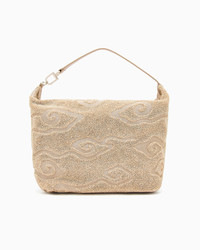 Hobo bag with deconstructed, generous volumes made in raffia with a foam-stitch wave motif and finished with matching leather details. The style retains the relaxed lines that define the la Prima Soft bag family, embellishing them with an oversized tassel detail and gold-coloured metal jewel GA logo. The zip fastening encloses a spacious and well-organised interior with two pockets, one of which is zipped. A dedicated daytime accessory, the perfect complement to many looks and ideal for holding all your essentials. Zip closure Dual handle for carrying by hand and shoulder Zipped interior pocket One internal patch pocket GA logo patch Lined Measurements: 40 x 23 x 31 cm Made in Italy This bag is perfect for holding your lipstick, phone, sunglasses, wallet, card holder and more Product Code: GW001139AF16467U6159