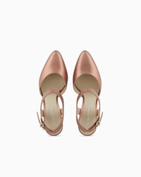 Court shoes made of supple lame leather with a distinctive scratched effect, offered in a bright and elegant shade. With an almond-shaped toe and an adjustable strap closure at the back, they put a modern spin on an archival style. Elegant and feminine, they complete evening looks with an exquisite touch. Almond-shaped toe Adjustable strap Covered heel Leather insole with signature logo Leather soles Heel height: 9.5 cm Made in Italy Product Code: X1E982XF85900030