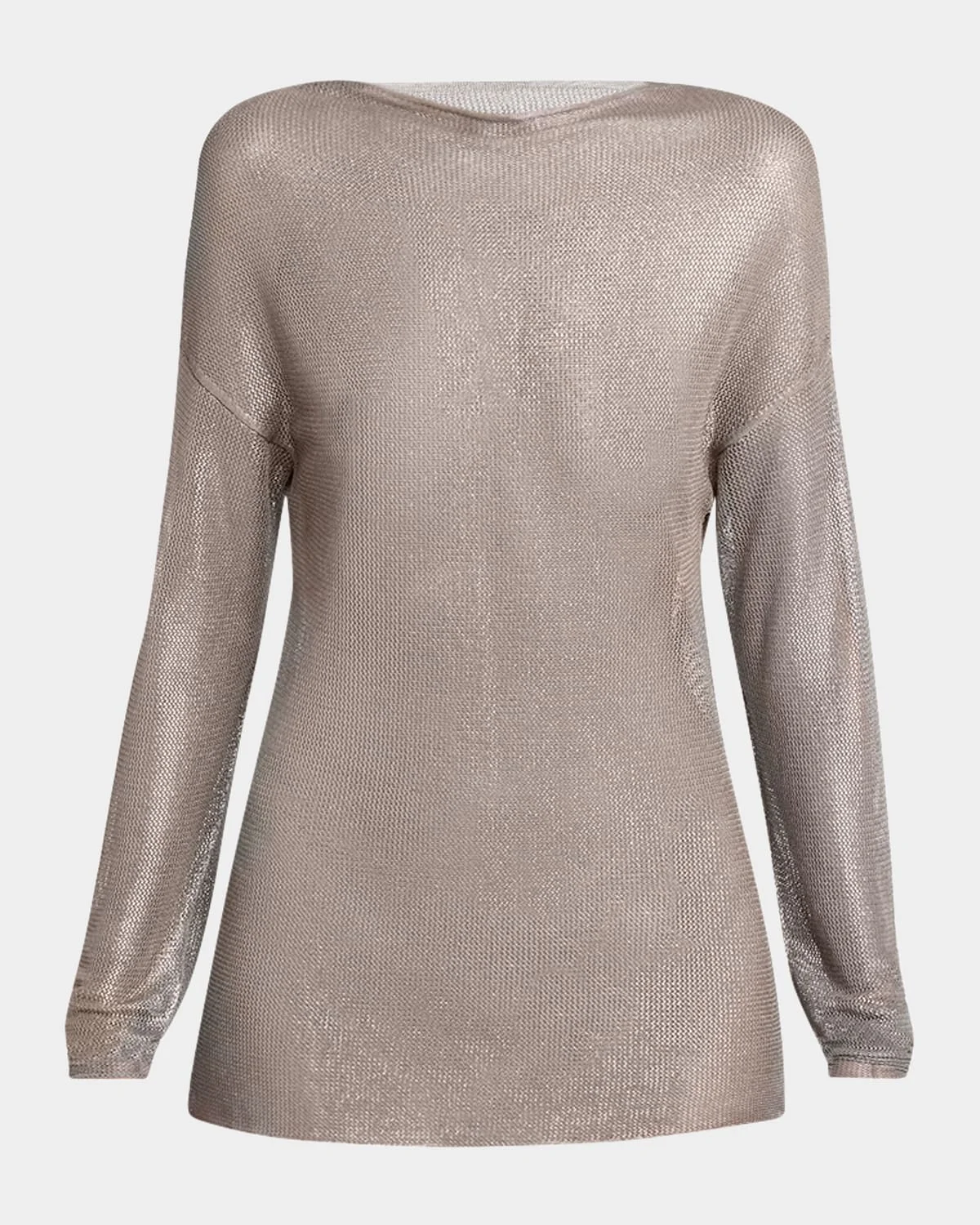 Giorgio Armani blouse cut from subtly sheer laminated mesh Bateau neckline Long sleeves Dropped shoulders Hip length Relaxed fit Pullover style Viscose/polyester Made in Italy