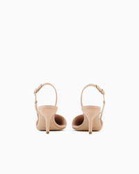 Elegant slingbacks made of suede with a distinctive laminated finish. The style, with a slightly asymmetric top line, comes in the subtle, nature-inspired hues of the collection and features a stiletto heel at a comfortable height and ankle strap for a perfect fit. Delicate and feminine, they will complete numerous looks with a sophisticated touch. Product Code: X1E957XF774100781 Details Composition 100% Goat skin Pointy toes Slightly asymmetric top line Ankle strap Leather insoles Leather soles with rubber inserts Covered stiletto heel Heel height: 6.5 cm Made in Italy