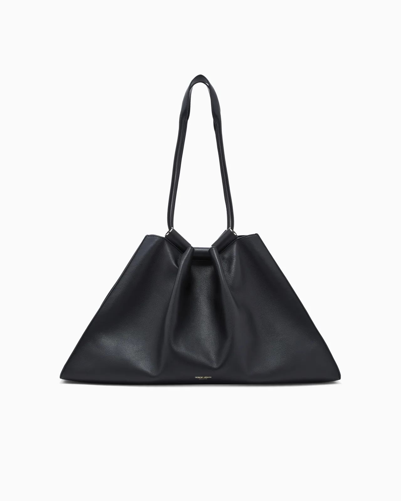 Large shopper made of supple nappa leather, with a casual and sophisticated attitude. Style with deconstructed and essential lines, featuring a double handle fixed with metal tubes that give the accessory natural folds, for a relaxed look. Convenient removable internal pouch with zip closure. An item that lends itself to completing numerous looks with style. Closure with internal covered magnetic buttons Two handles Detail of covered metal tubes Suede interior Removable internal pouch closed with zip, and external pocket and heat-stamped logo External heat-stamped golden logo Measurements: 55 x 14.5 x 36 cm Made in Italy Product Code: GW002733AF24664UC001