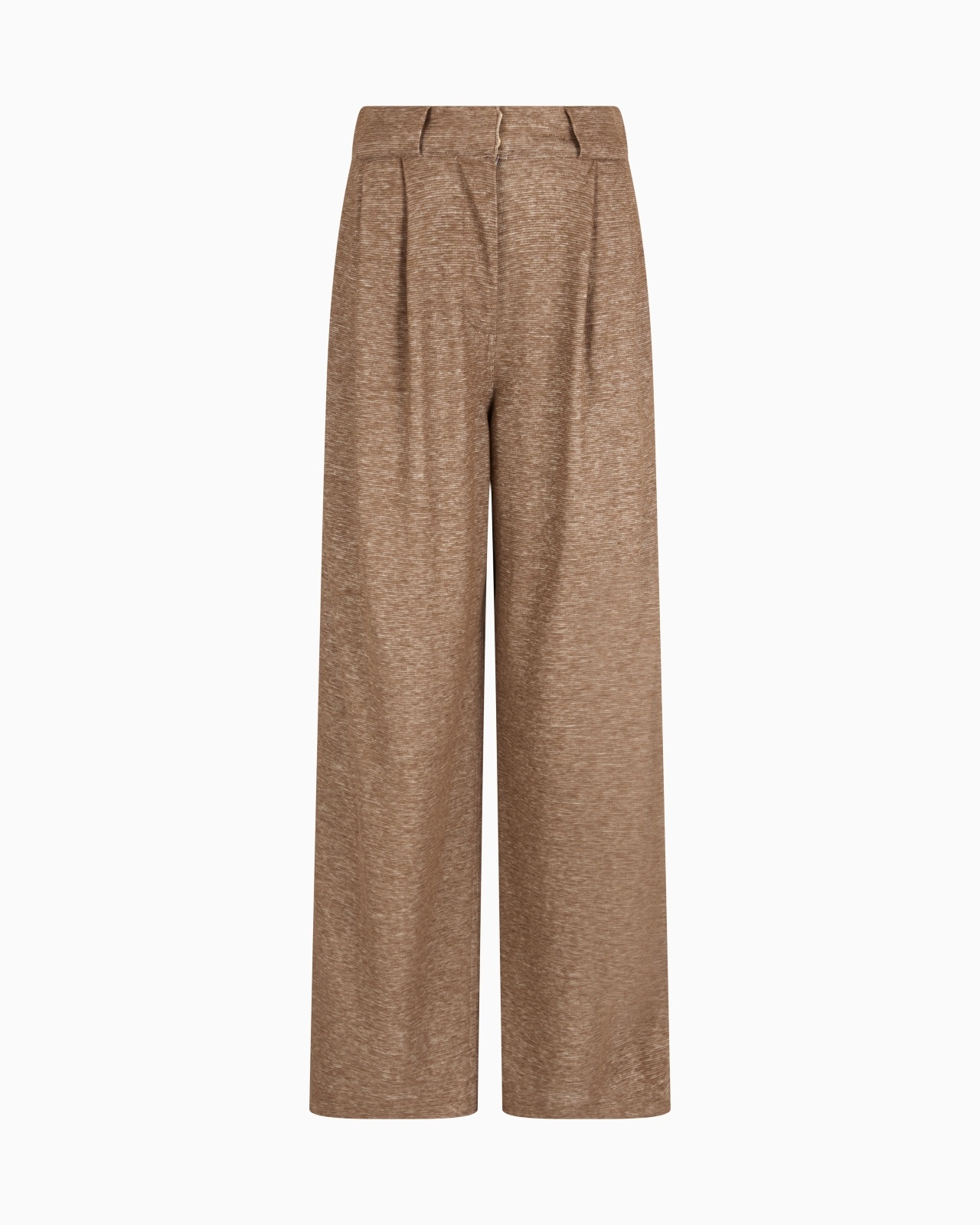 Clean lines and comfortable volumes define these two-tone linen-blend jersey trousers. The style features a front pleat, button and zip fastening, two side pockets and a wide leg. The perfect piece to add a versatile, laid-back allure to daytime looks. Waistband with belt loops Button and zip closure Two side pockets Made in Italy Product Code: GW000906AF15060O1002