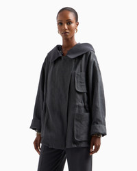 LINEN HOODED PEA COAT