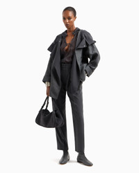 Enveloping pea coat made of compact linen, available in forest green, the hallmark colour of this part of the collection. The style has a large drawstring hood, a concealed closure and patch pockets. The matching embroidered detail that embellishes the breast pocket, an interior drawstring, and a feminine, flared line define this versatile piece, a perfect addition to daytime looks. Large drawstring hood Side placket fastening Two patch pockets Breast patch pocket with embroidered detail Inner drawstring at the waistline Sleeve turn-up Unlined Length: 72 cm Made in Italy Product Code: GW000924TE11126U8110
