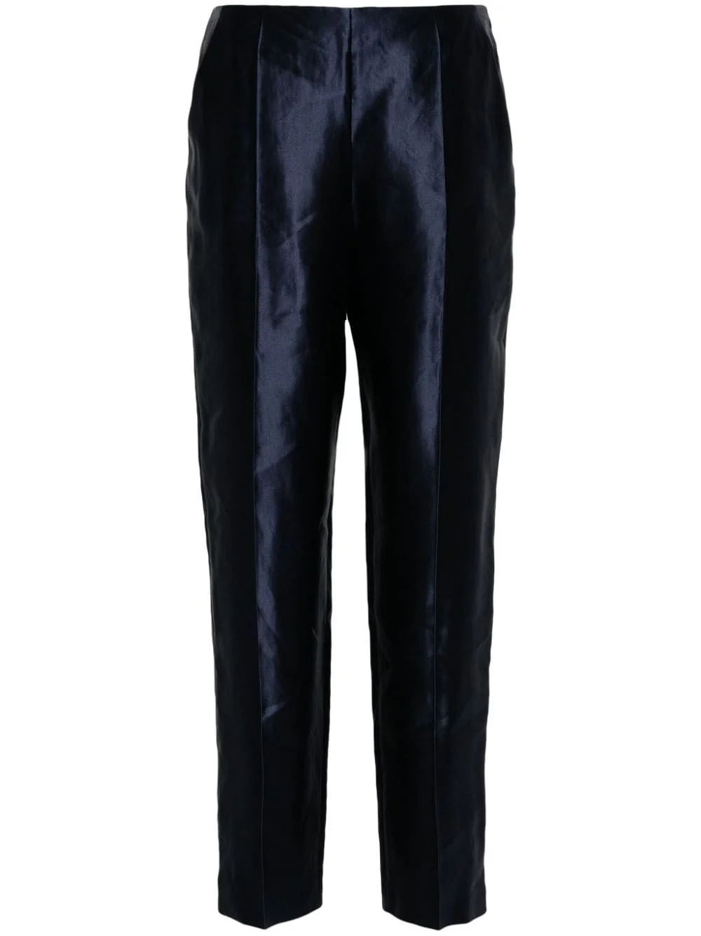 seam-detail satin trousers Highlights - Navy blue - Linen-silk blend - Satin finish - Seam detailing - Dart detailing - Two diagonal pockets to the sides - Concealed side zip fastening Made in Italy Composition Linen/Flax 63%, Silk 37% SIZE & FIT Model measurements Height 5 ft 9 in(1.75 m) Bust/Chest 34.64 in(88 cm) Hips 36.61 in(93 cm) Waist 26.37 in(67 cm) FittingInformation Designed for a tapered fit, these trousers allow for a close fit at the waist and a loose unrestricted fit over the leg with a closer fit towards the ankle Made from a lightweight non-stretch fabric This piece fits true to size – take your usual size