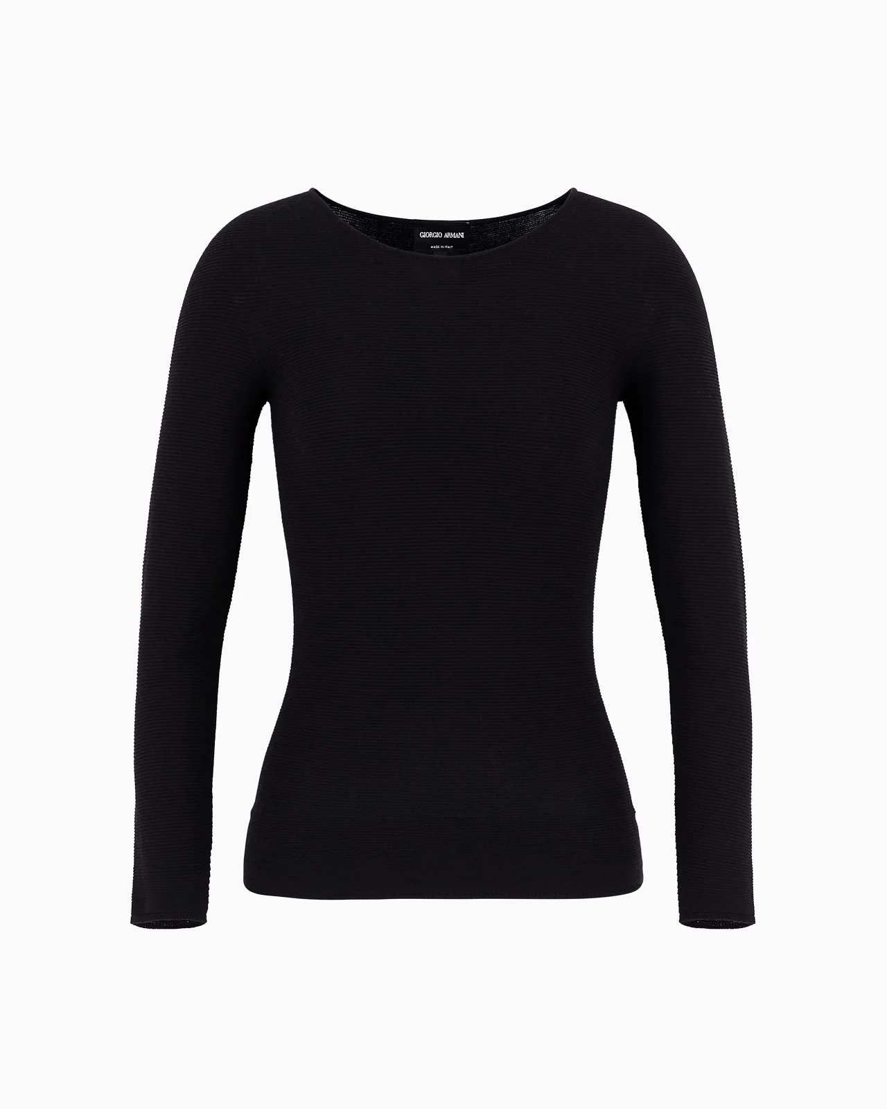 Long-sleeved crew-neck jumper made from a viscose blend with slim, clean lines, with an extremely comfortable fit thanks to its seamless construction. Simple yet sophisticated, it is an essential piece to capture the spirit of Giorgio Armani style. Product Code: 8NAM31AM05Z10999 Details Composition 67% Viscose 33% Polyester Fineness: 15 Seamless Crew neck Long sleeves Made in Italy Fitting The model is 178 cm tall and is wearing size 38/S