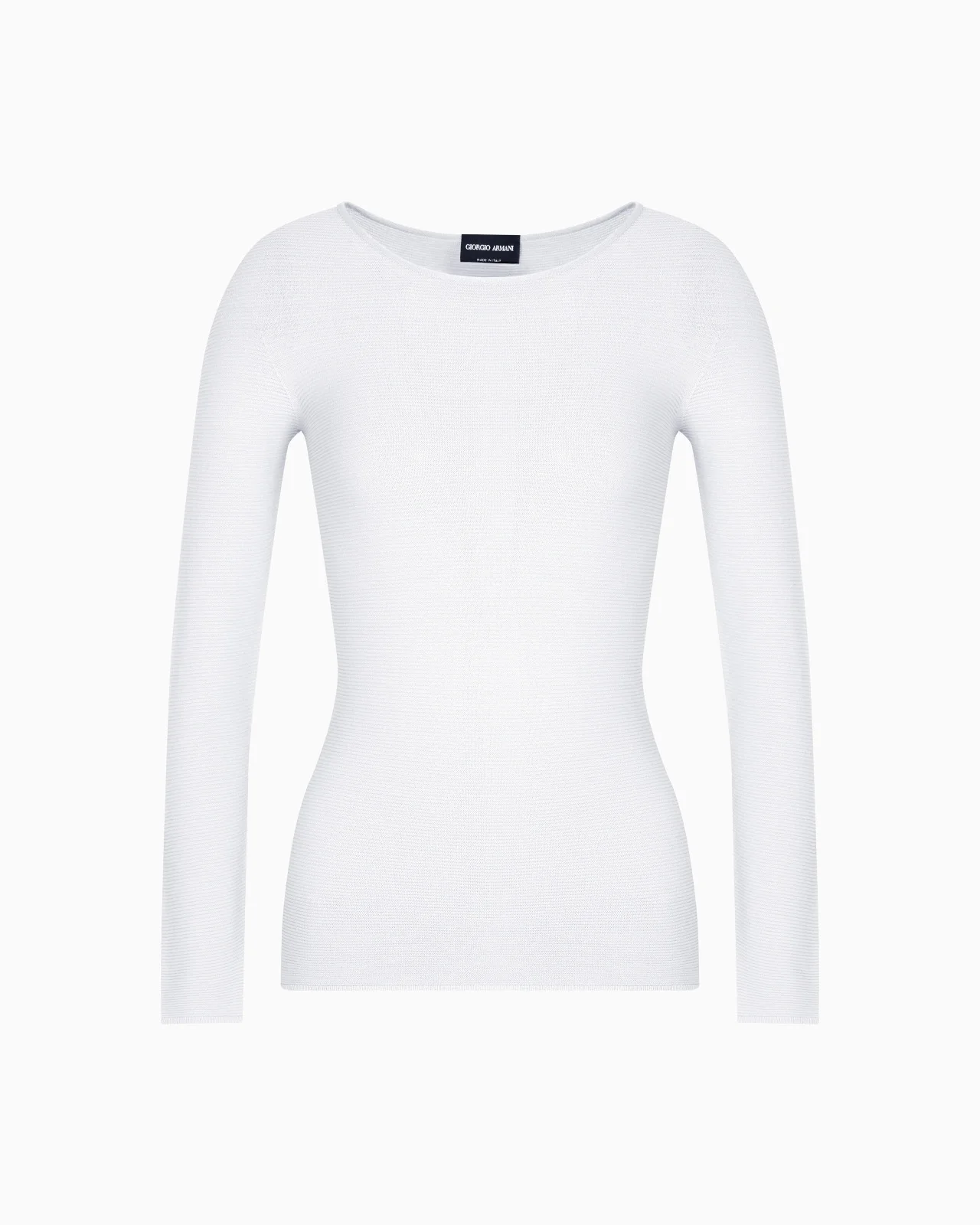 Long-sleeved crew-neck jumper made from a viscose blend with slim, clean lines, with an extremely comfortable fit thanks to its seamless construction. Simple yet sophisticated, it is an essential piece to capture the spirit of Giorgio Armani style. Fineness: 15 Seamless Crew neck Long sleeves Made in Italy Product Code: 8NAM31AM05ZU8003