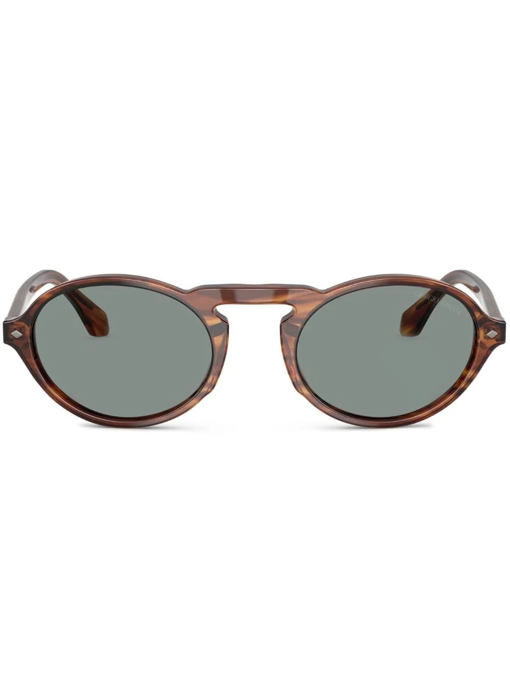 logo-print sunglasses Highlights - Cedar brown - Acetate - Logo print at the arm - Round frame - Blue tinted lenses - Straight arms - Curved tips - These glasses come with a protective case. Made in Italy Composition Acetate 100% SIZE & FIT Measurement Arm Length 5.7 in(14.5 cm) Bridge Width 0.86 in(2.2 cm)