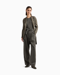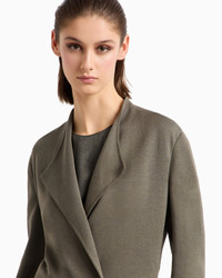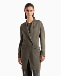 Long jacket made of silk and linen with a cosy, lightweight feel. The style features wide lapels, a closure with two visible buttons and two front welt pockets. Essential and chic, it completes daytime outfits paired with the collection's trousers and blouses. Fineness: 18 Wide lapels Double-breasted, two-button closure Product Code: GW000899AF14926U8119
