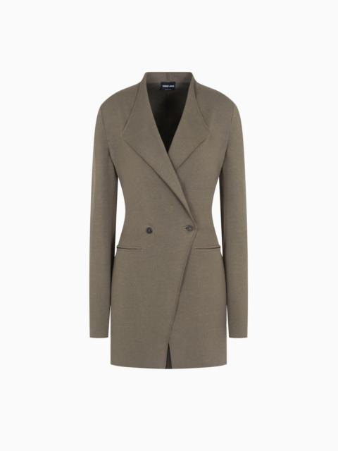 LONG DOUBLE-BREASTED VISCOSE AND LINEN JACKET