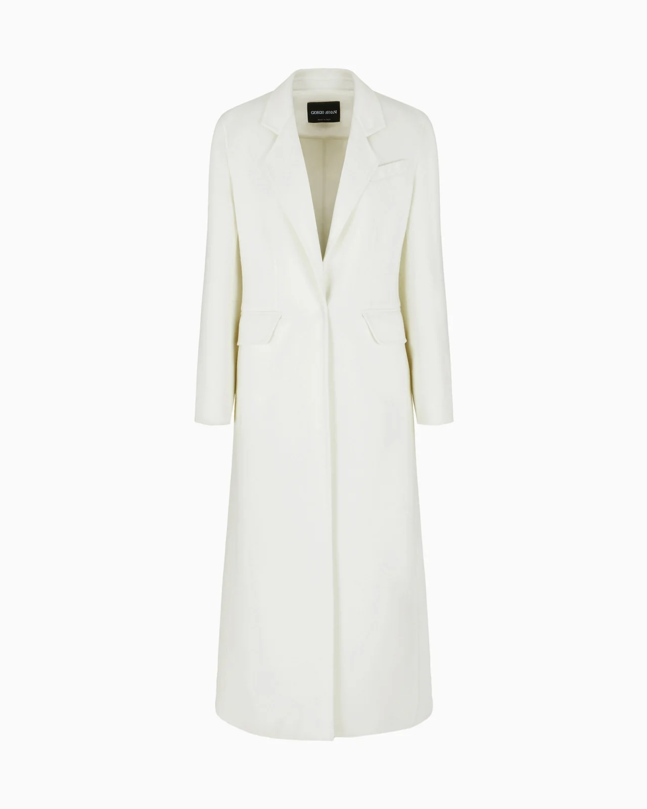 Made from double-faced cashmere, this distinctive, elegant long coat can be worn anywhere, making it perfect in formal or less formal looks. It is the embodiment of the brand’s hallmark sophisticated, refined style. Product Code: 2WHOL093T02O91U0BN Details Composition 100% Cashmere Single-breasted closure with a single press stud Collar with notched lapels Straight flap pockets Centre-back slit Length: 125 cm Made in Italy
