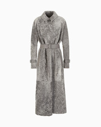 Made from lambskin shearling, this elegant long coat comes in a sophisticated shade of grey that brings out the garment’s lustre. Luxurious and refined, it features monochromatic, nappa-leather details, a concealed press-stud closure and dynamic back slit. It expertly provides a touch of style in a wide array of looks. Monochromatic, nappa-leather undercollar Shirt collar with hook Closure with three concealed press studs Monochromatic, nappa-leather belt Cuffs with monochromatic, nappa-leather straps Two monochromatic, nappa-leather side flap pockets Back slit Unlined Length: 120 cm Made in Italy Product Code: H3AL01CAP01628
