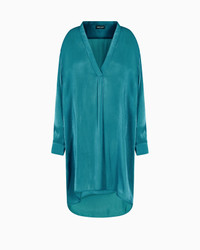Smooth, slinky lines for this long shirt made from a shiny fabric with a distinctive shimmering, iridescent effect. It features a shaped V neckline, an asymmetric hem and side slits that add movement. A versatile offering, perfect to pair with the matching trousers for a sophisticated, fresh look. V-shaped neckline Long sleeves Single-buttoned cuffs Side slits Asymmetric hem Unlined Made in Italy Product Code: GW000793TE13893U9189
