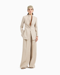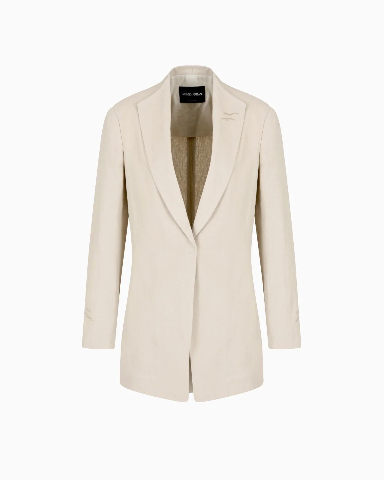 This single-breasted jacket is made from fresh linen with a comfortable, silky feel and has a fluid, unstructured silhouette. The single-breasted style has side slits and is embellished with a matching embroidery on the lapel recalling the urban tiger theme that repeats throughout the collection. Pair it with the trousers in the same fabric to create effortlessly chic outfits. Single-breasted jacket Single lapel Single-breasted closure with concealed button Two side pockets Back vents Matching embroidery on the lapel Partially lined Length: 75 cm Made in Italy Product Code: GW000847TE11126U8048