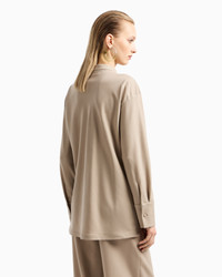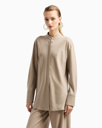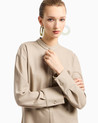 Elegant shirt made from fluid wool, with a relaxed, slinky fit. Its clean-lined construction features a guru collar, button placket and long sleeves. A sophisticated, versatile piece that is perfect paired with the collection’s skirts and trousers. Guru collar Exposed button closure Wide one-button cuffs Made in Italy Product Code: GW000791TE13592U8048