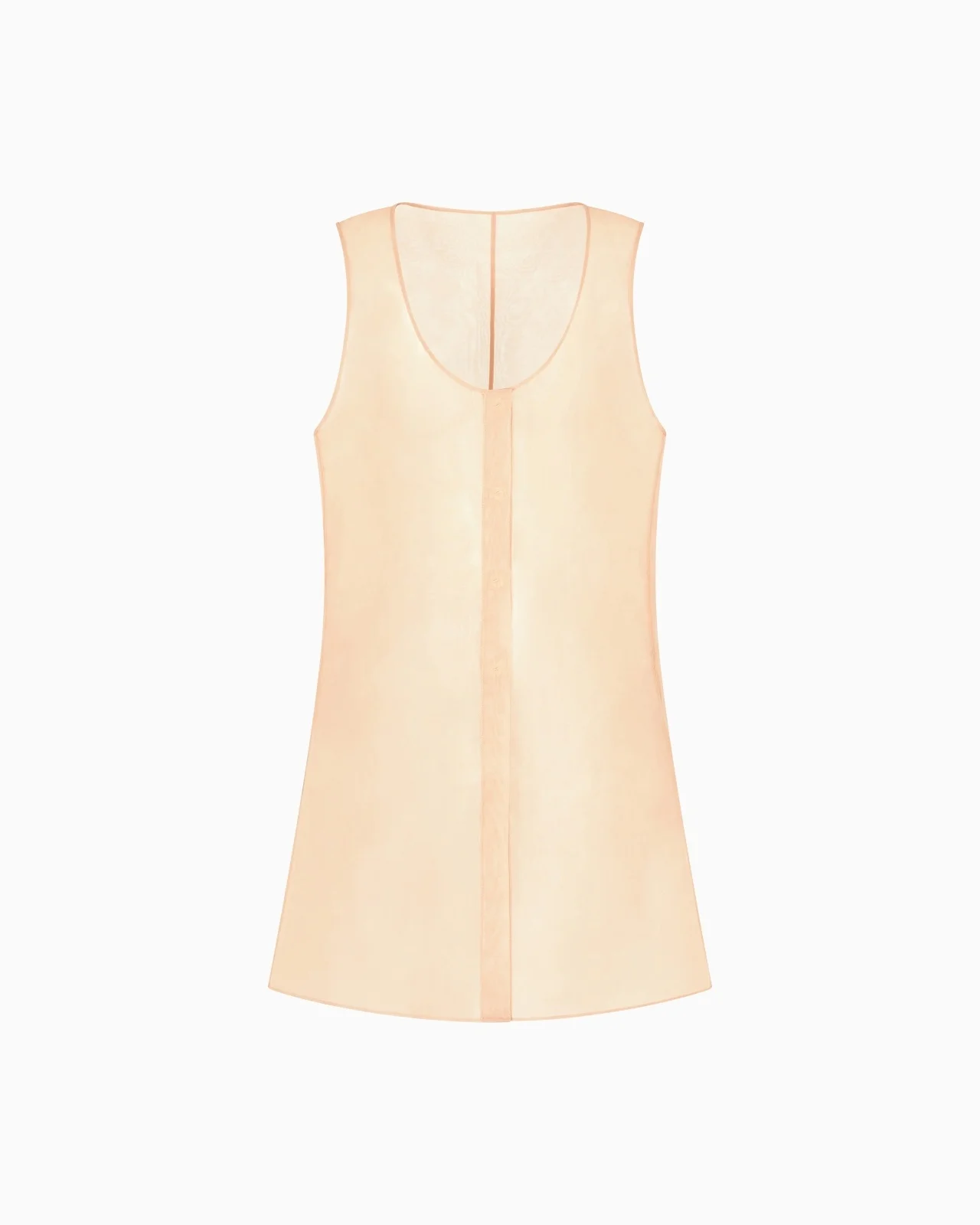 Long top made from fresh, lightweight technical organza. The style, with its essential construction, is only embellished with deep side slits and has a concealed fastening and deep oval neckline. A casual, chic style perfect for completing daytime looks teamed with slinky, relaxed-fit trousers. Oval neckline Sleeveless design Front closure with concealed press studs Large side slits Unlined Length: 76 cm Made in Italy Product Code: GW000795TE15731U6071