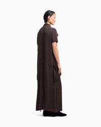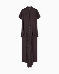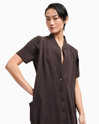 Long dress made of triple silk georgette, a fabric defined by its fluid, lightweight feel. The style is distinguished by its sophisticated play of asymmetrical overlays and panels, which create volume and movement. The collar opens slightly at the front, over a partial closure with exposed buttons, while the elongated silhouette dresses the figure without restrictions. A piece with an elegant style and modern taste. Layering effect Shirt-effect top with short sleeves and asymmetric hems Two front patch pockets and small press studs Skirt with rounded overlap and front slit Unlined Length: 100 cm at the sides Made in Italy Product Code: GW001944TE10814U8130