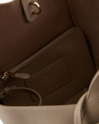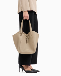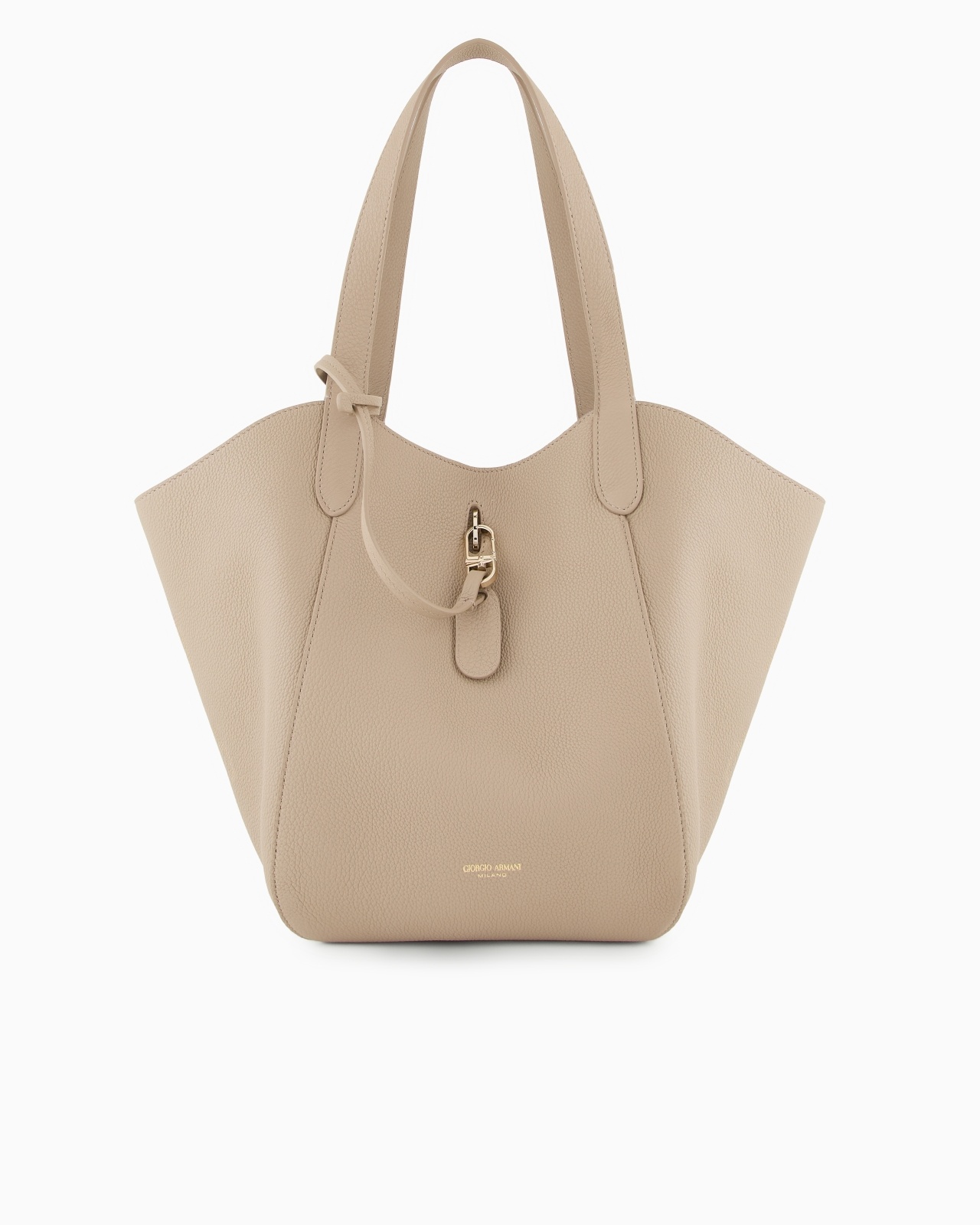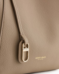 Medium handbag made of pebbled leather, available in the collection colour palette. The style combines a square shape with a deconstructed, unlined construction with a draped look. Featuring a distinctive metal ring and snap-hook closure, it is embellished with a practical zipped, detachable internal pouch perfect for your mobile phone. A versatile, feminine offering, designed for everyday use, perfectly in keeping with the ready-to-wear colours and inspirations. Double handles Ring and snap-hook clasp Inner zip pouch, small patch pocket and hot-stamped logo Unlined Measurements: 32 x 44 x 24 cm Made in Italy Product Code: GW000821AF14187U6153