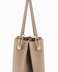 A heritage-inspired piece that recalls some of the brand’s hallmark styles, such as clean lines and a relaxed, deconstructed attitude. Made of pebbled leather, it features an internal press stud closure and gold-tone metal bar detail that retains the leather handles, creating a subtle gathered effect. A exceptionally sophisticated luxurious accessory, perfect for daytime use. Press-stud closure Two leather handles Gold-metal bar detail Heat-stamped Giorgio Armani logo Interior pocket with zip One patch pocket Measurements: 34 x 33 x 18 cm Made in Italy This bag is perfect for holding your lipstick, phone, sunglasses, wallet, card holder and keyring Product Code: GW000716AF14187U6153