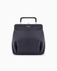 Suede handbag featuring completely deconstructed lines and a construction without a lining or internal pockets. A style that stands out for its draped, lightweight appearance and can be worn three ways: the accessory can be carried by hand using the covered tubular handle, on the shoulder, using a removable suede shoulder strap, and finally as a clutch bag, by folding the handle onto itself. An elegant and versatile piece, perfect for teaming with many looks on many occasions. Tubular suede handle, foldable Snap closure with embossed GA metal button Removable suede shoulder strap Unlined Heat-stamped Giorgio Armani logo Measurements: 30 x 10 x 28 cm Made in Italy Product Code: GW001732AF18691U6032