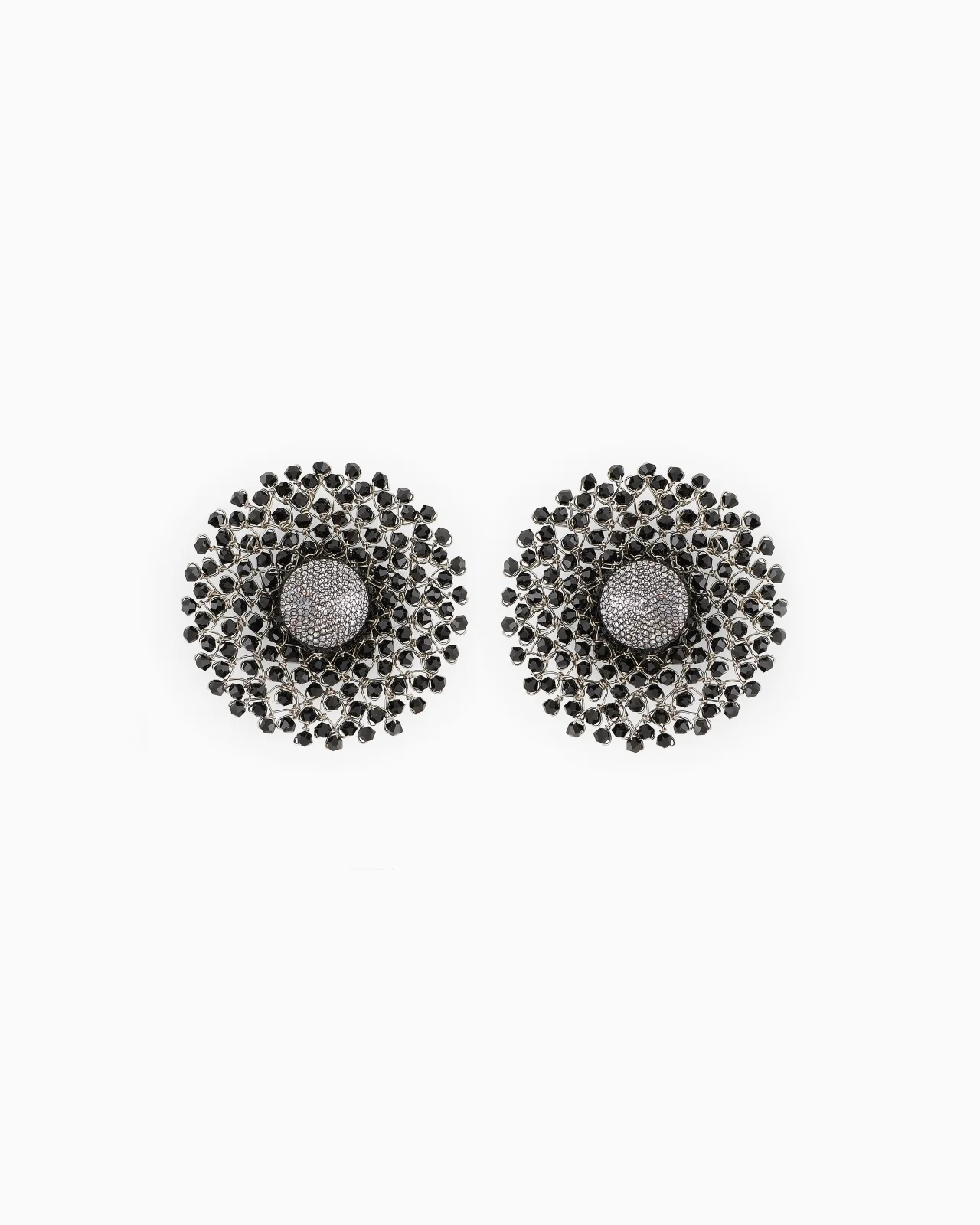 Bright and delicate, these clip-on earrings feature unique intertwined beads and bronze and tin mesh. Inspired by flower petals and constructed entirely by hand. An exquisite, special item, perfect for completing evening looks. Clip fastening Scratched-effect metal centrepiece Tricot embroidery with metal thread and beads Made in Italy Product Code: GW001235AF15933UC001