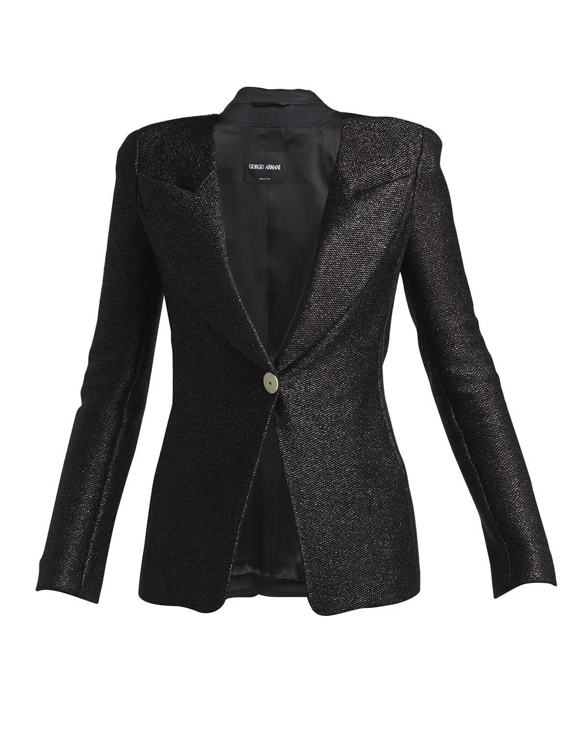 Giorgio Armani blazer with Rafia motif and novelty buttons Peak lapels; singlebreasted front Long sleeves; button cuffs Tailored fit Cotton/polyester Made in Italy