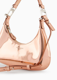The iconic lines and charm of the la Prima bag are made mini in this new hobo bag made of mirror-effect satin lame leather. The style has a zip closure, detachable handle and adjustable shoulder strap for wearing on the shoulder or cross-body. With a young, current attitude, it is the perfect accessory to complete evening looks or for special occasions. Product Code: Y1E233YWP2E180043 Details Composition 100% Lambskin Zip closure Detachable handle with snap hook Detachable strap with stud-button fastening for wearing cross-body or on the shoulder Heat-stamped Giorgio Armani Milano logo Palladium plating Measurements: 23 x 20 x 6 cm Made in Italy