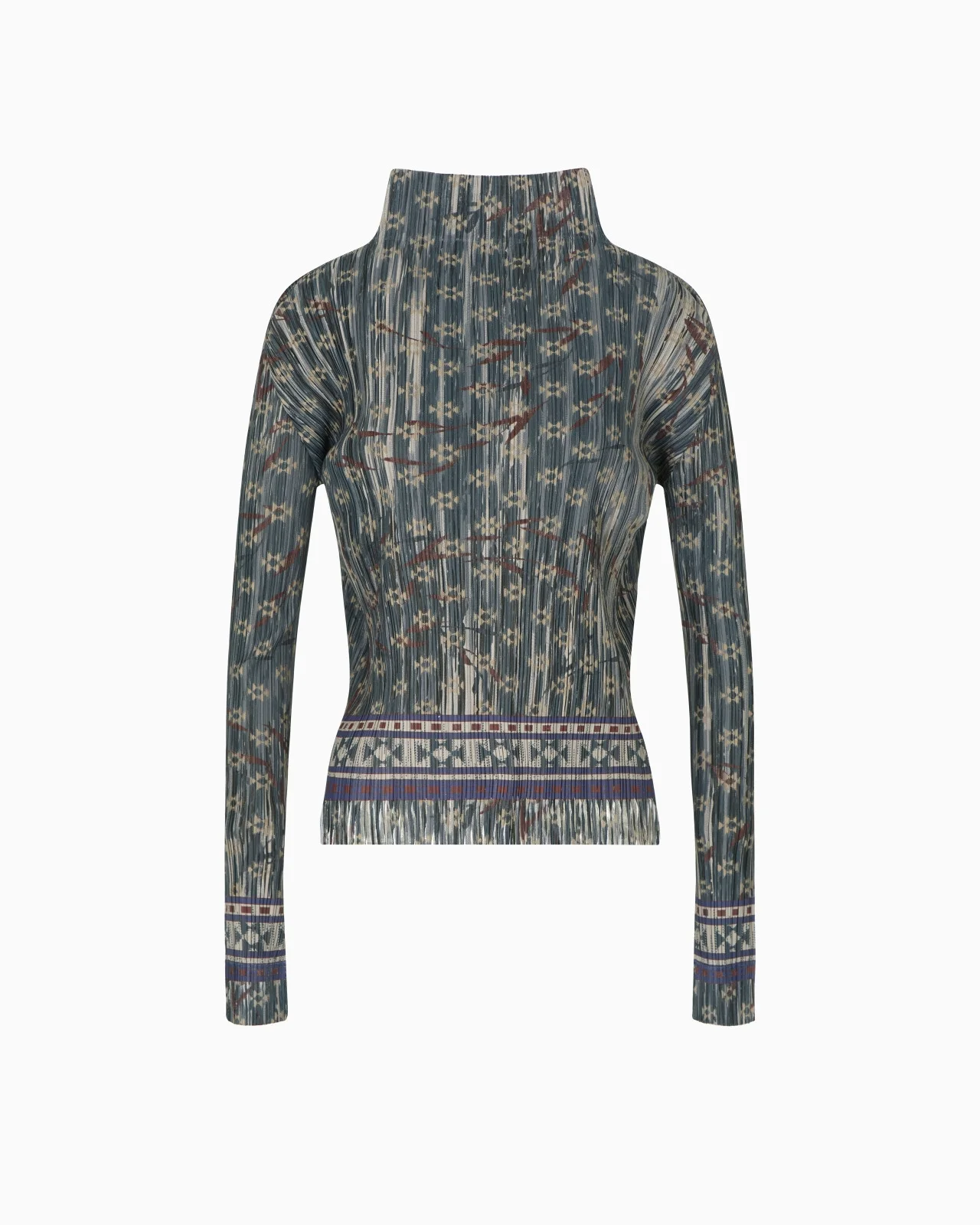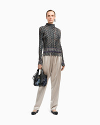 Long-sleeved jumper made from lightweight pleated jersey, embellished with a sophisticated print. Featuring a funnel neck and straight hem with fringe detail, it has a flattering slim fit. A comfortable offering, designed to add a sophisticated touch to multiple combinations. Funnel neck Long sleeves All-over collection print Fringed hems Made in Italy Product Code: GW001925AF19200F8096
