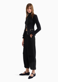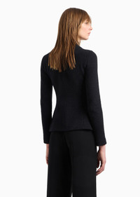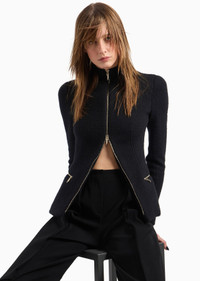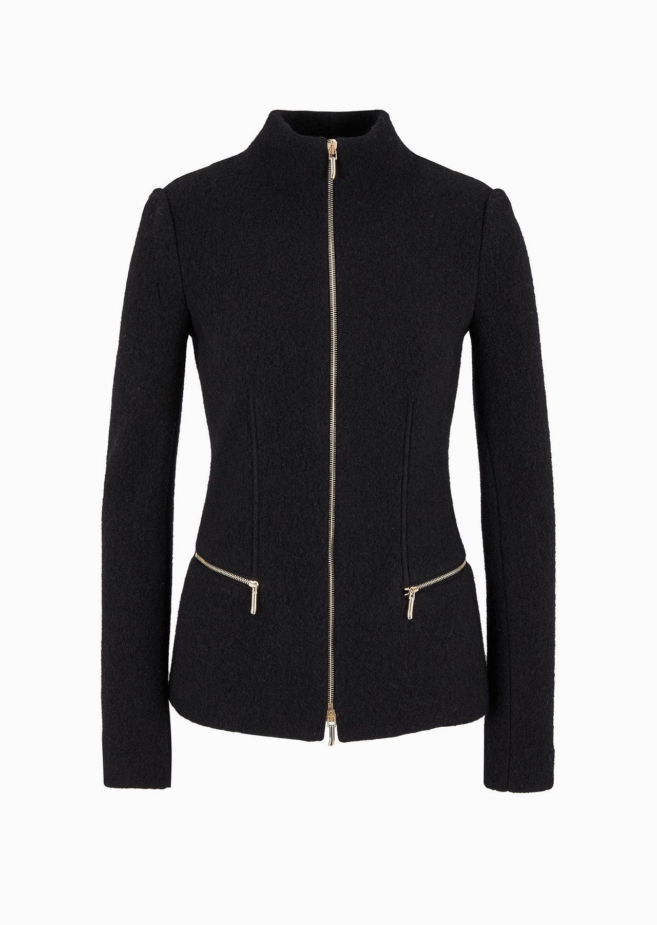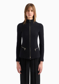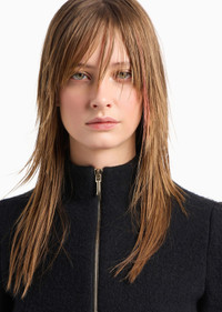 Slimline zipped jacket made of cotton, wool and cashmere double cloth. The style elegantly drapes over the silhouette and features a front zip closure, small upright collar and two front zipped pockets. The front rib detail accentuates the waist, elongating the silhouette. A sophisticated style designed to complete evening looks. Product Code: 6DAG65AJZVZ1UC99 Details Composition 50% Cotton 42% Wool 8% Cashmere Upright collar Front zip closure with double pull tabs Two horizontal pockets with zip Monochromatic stitching detail Length: 60 cm Made in Italy Fitting The model is 178 cm tall and is wearing size 38/S