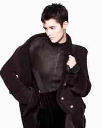 Essential and minimalist: this mock-neck jumper is crafted from textured silk and elegantly adorns the feminine silhouette. A versatile offering that is perfect worn under a jacket or paired with the collection's pleat-front trousers for a casual daywear look. The piece is part of the New Normal selection, an offering that reinterprets the brand’s archive looks with a modern twist. Pieces in elongated and fluid shapes and with an androgynous flavour dress the feminine silhouette with elegance for day-to-night looks. This season it comes in a natural colour palette animated by a series of chevron motif and houndstooth shapes, a clear reinterpretation of pieces "stolen" from the male wardrobe with a feminine twist. Fineness: 18 Mock neck Long sleeves Made in Italy Product Code: GW002112AF19705U8130