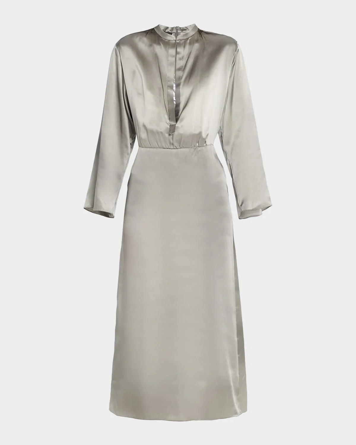 - Giorgio Armani dress featuring an ombre print - Round neckline; split V front - Long sleeves - A-line silhouette - Hem falls below the knee - Back zip - Silk - Dry clean - Made in Italy