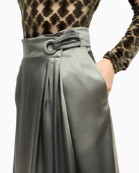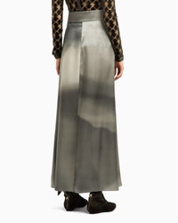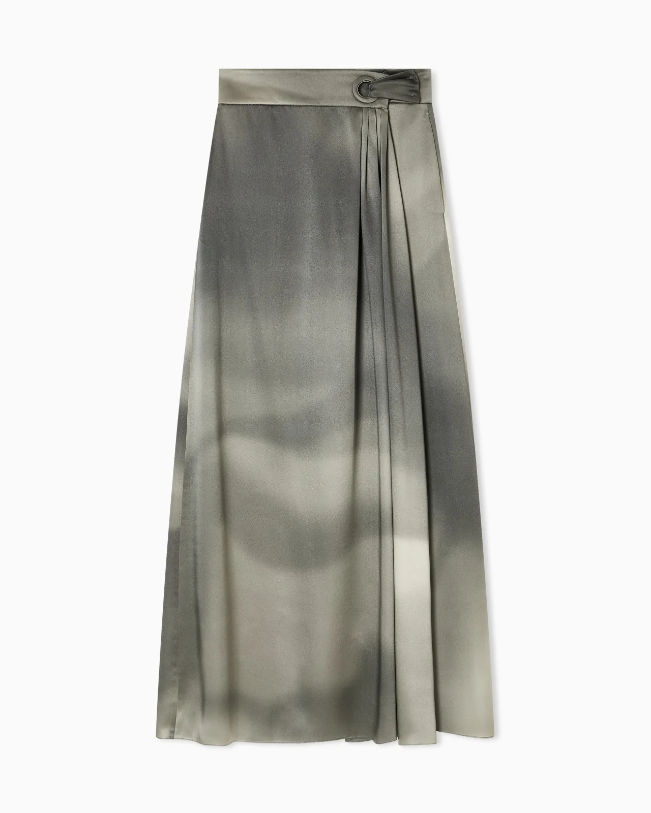 Long skirt made of silk satin, a luxurious fabric with a smooth feel, embellished with a subtle gradient-effect print. The style is distinguished by its elegant, elongated silhouette, featuring slight draping at the front held in place by a ring detail at the waist. An extremely feminine, versatile piece, perfect for distinguishing refined daytime looks, teamed with essential tops and blouses. Waistband with contoured detail Concealed button closure Two side pockets Unlined Length: 100 cm from the waist Made in Italy Product Code: GW001894TE16741F6122