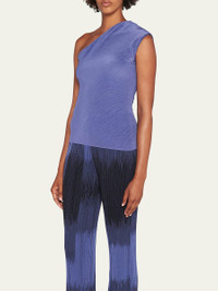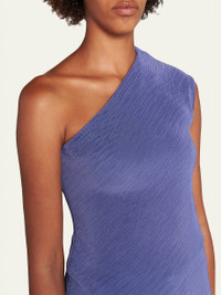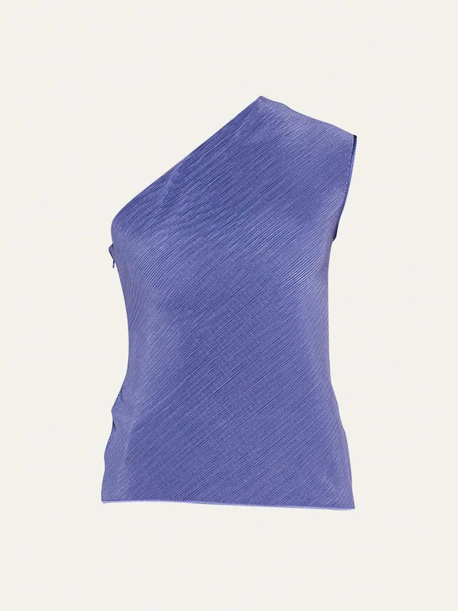 One-Shoulder Plisse Silk Blouse