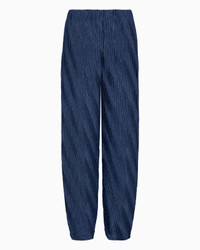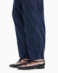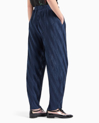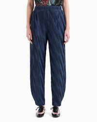 Trousers made of two-tone pleated jersey, the perfect combination of minimalism and sophistication. They have a comfortable fit, highlighted by loose volumes and an elasticated waist. The distinctive pleated construction enhances the sheen of the yarn and adds movement to the piece, perfect for pairing with the jacket in the same fabric to create a sophisticated daywear suit. Product Code: 6DAP50AJHOZ1UBUL Details Composition 100% Polyester Elasticated waist Cuff width: 16 cm Made in Italy Fitting The model is 178 cm tall and is wearing size 38/S