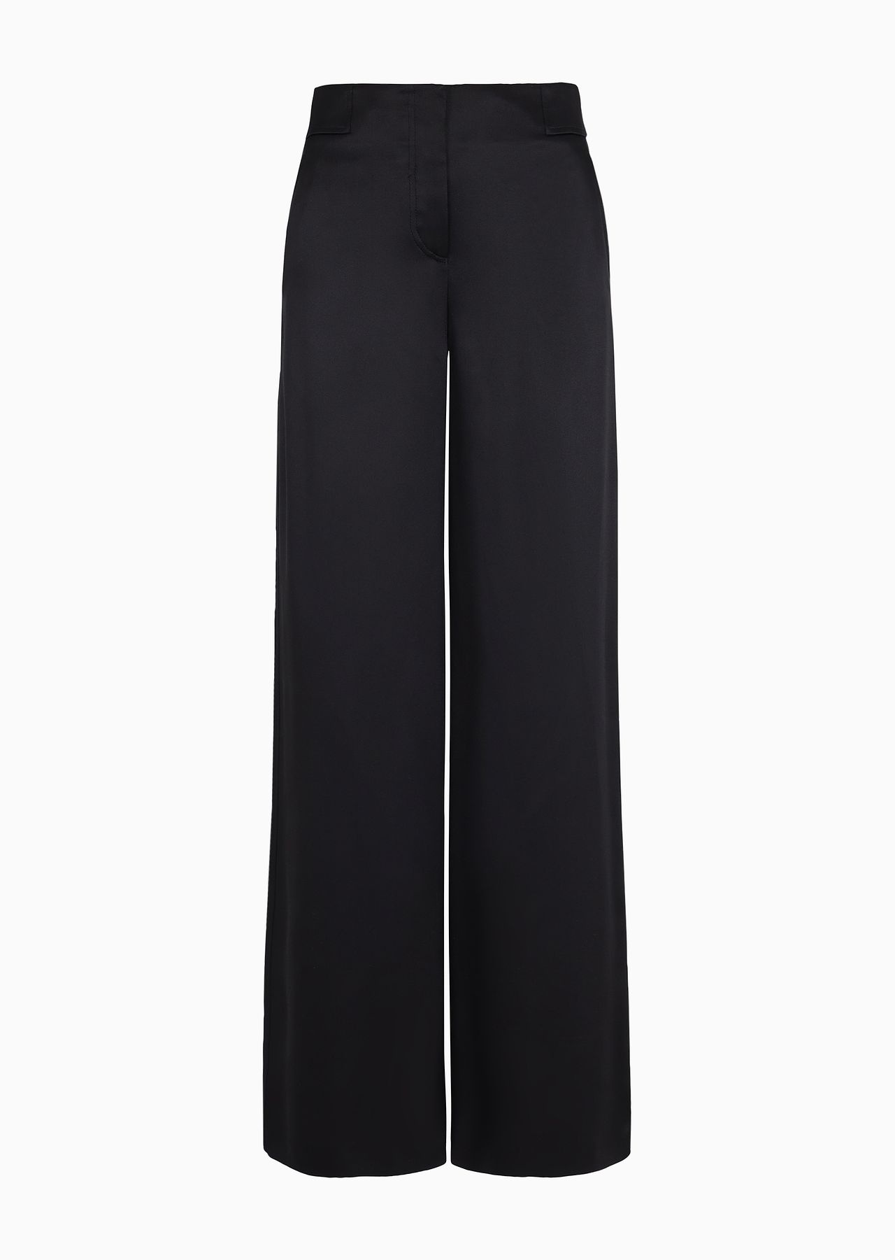 Wide trousers made of double silk satin, in deep shades inspired by winter hues. The style features a contoured waistband that highlights the waist, two side pockets and a back patch pocket. A relaxed piece that complements many looks to perfection. Product Code: GW000168TE101011UC001 Details Composition 100% Mulberry silk Contoured waistband Concealed zip closure Two side pockets Back patch pocket Unlined Made in Italy Fitting The model is 178 cm tall and is wearing size 38/S