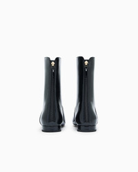 Square-toed ankle boots made of patent leather, with a practical zip fastening on the back. The Giorgio Armani logo on the insole, inspired by the labels of the brand’s sophisticated clothing, customises this footwear. A current, versatile and minimalist style reflecting Armani’s iconic androgynous aesthetic, perfect for a variety of occasions. Square toe Back zip closure Lined Leather-banded heel Sole with Giorgio Armani logo Heel height: 1 cm Made in Italy Product Code: GW003418AF18052UC001