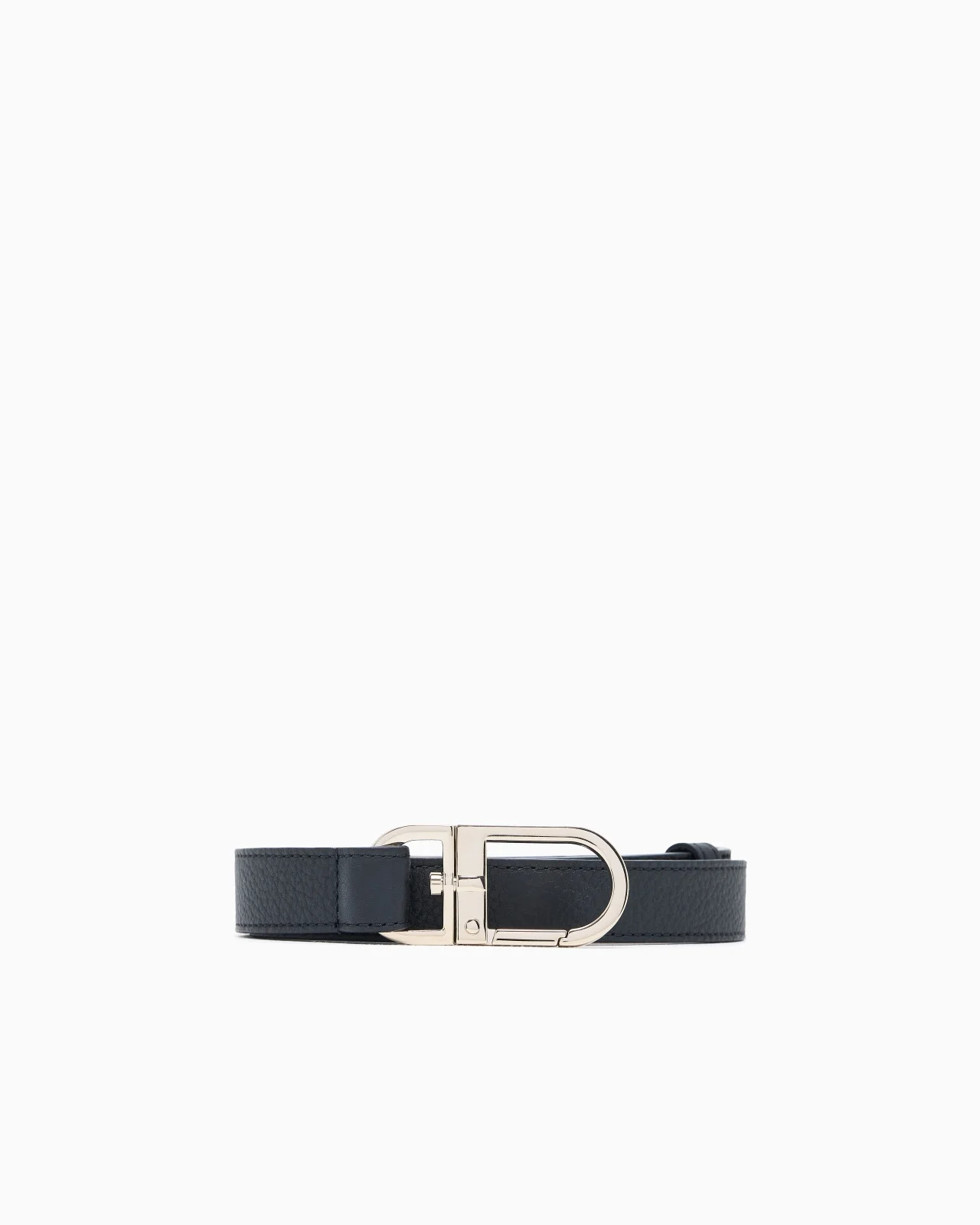 Pebbled leather belt featuring a metal snap-hook, a distinctive element that recalls the closure of some collection bags. Light gold snap-hook closure Made in Italy Product Code: GW001978AF14187UC001