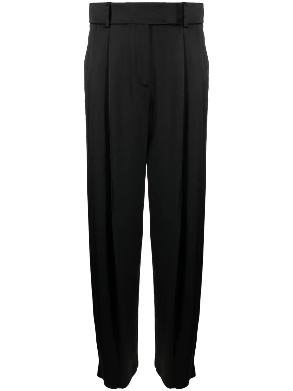 pleat-detail wide-leg silk trousers Highlights - Jet black - Silk - Satin finish - High-waisted - Inverted pleat - Belt loops - Off-centre front fastening - Two side slash pockets - Rear welt pocket - Wide leg Made in Italy Composition Silk 100% SIZE & FIT Model measurements Height 5 ft 11 in(1.8 m) Bust/Chest 33.07 in(84 cm) Hips 37.4 in(95 cm) Waist 25.19 in(64 cm) FittingInformation Designed with a wide-leg cut, these trousers allow for a close fit at the waist and offer a loose and roomy fit over the leg Made from a lightweight non-stretch fabric This piece fits true to size – take your usual size Washing instructions Dry Clean Only