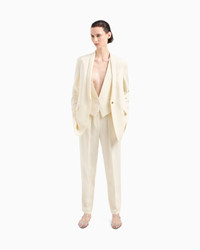 High-waisted trousers made from silk cady with a subtle glitter effect. The style features symmetrical pleats on the front and side pockets and are an expression of the collection’s sophisticated spirit. Perfect paired with jackets and trousers for refined and elegant looks. Smooth waistband Concealed zip-and-hook closure Two side pockets Single back welt pocket Made in Italy Product Code: GW000641TE14756U0006