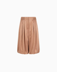 Refined lines for these Bermuda shorts made from viscose and cupro, offered in the season's colour palette. The style has a zip fastening and two side pockets, and features front pleats which add movement and volume. Sophisticated and feminine, they dress the silhouette with elegance, completing daytime looks paired with the collection’s jackets and shirts. Style with pleats Waistband with belt loops Concealed zip-and-hook closure Two side pockets Unlined Length: 45 cm from the waist Made in Italy Product Code: GW000866TE13750U6090