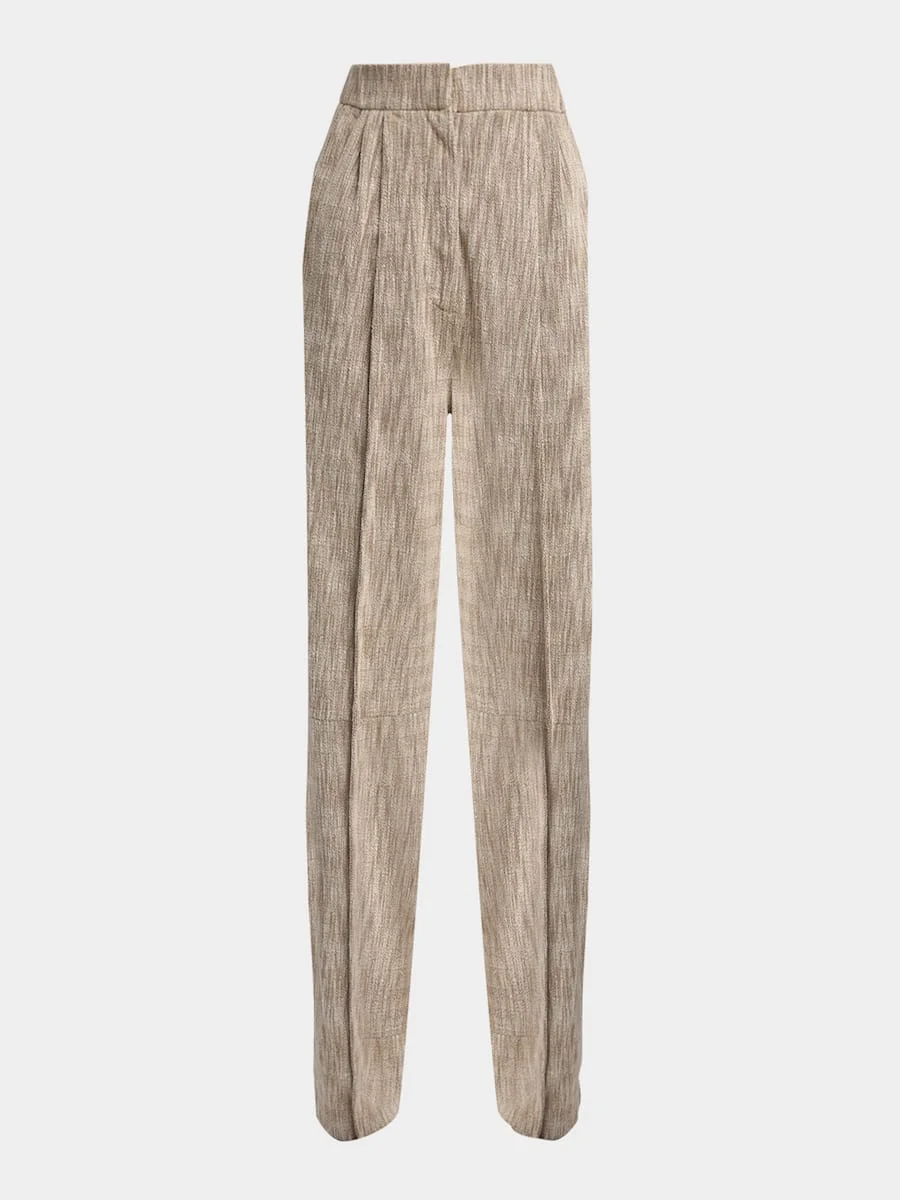 Pleated Cotton Jacquard Tapered-Leg Trousers