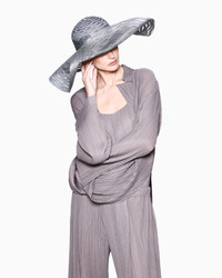 Relaxed, flowing trousers made of pleated jersey. The style features an elasticated waistband and rounded hem. A feminine, elegant item, the perfect complement to many looks. The piece is part of the New Normal selection, an offering that reinterprets the brand’s archive looks with a modern twist. Pieces in fluid shapes and with an androgynous flavour dress the feminine silhouette with elegance for day-to-night looks. This season it is presented in a natural colour palette with a sophisticated and authentic simplicity. Elasticated waistband Two side pockets Wide rounded ankle cuff Made in Italy Product Code: GW003215AF23439U6200