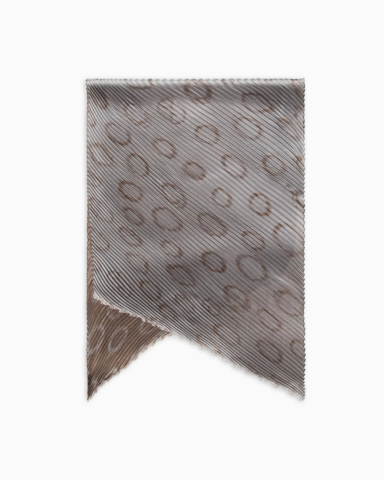 Refined scarf made of exquisite silk and featuring pleats, which add structure and a three-dimensional effect to the accessory. Embellished with a two-tone print, the item is perfect for completing numerous looks. Contrasting print Measurements: 180 x 60 cm Made in Italy Product Code: GW001966AF19162F8074