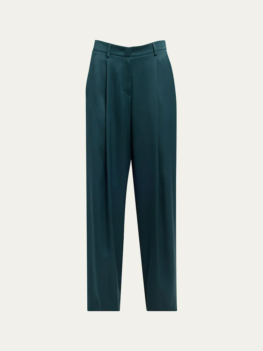 Pleated Silk Straight-Leg Trousers