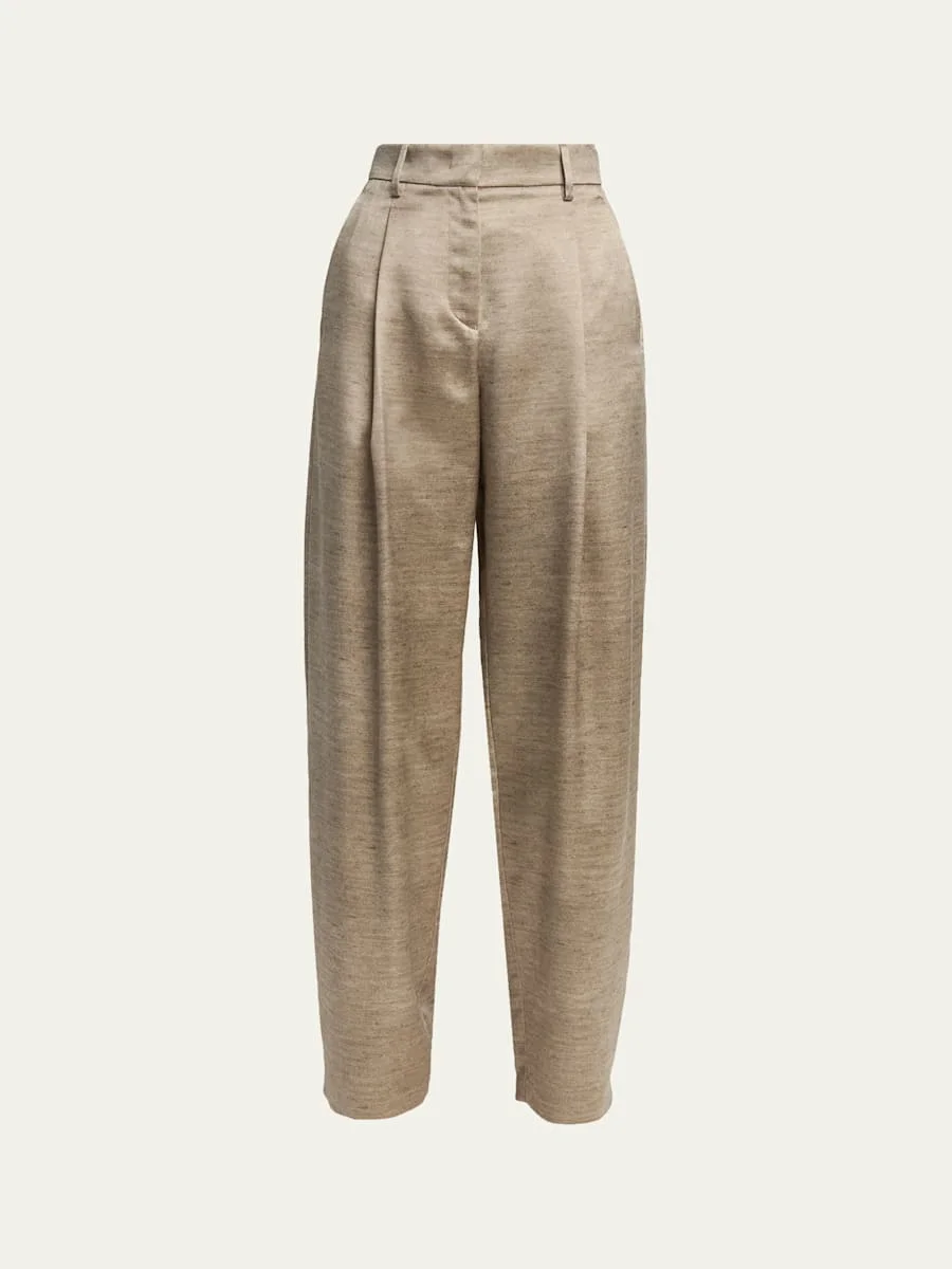 Giorgio Armani trousers are crafted from lustrous silk tailored with a single pleated front High rise Side slip pockets Back welt pockets Straight legs Full length Hook/zip fly; belt loops Silk Dry clean Made in Italy