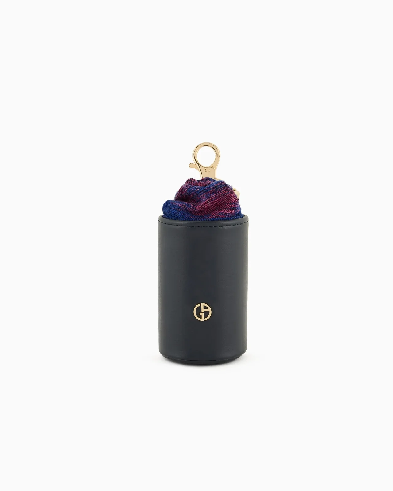 A must-have accessory for city walks, this bag holder is crafted from elegant blue leather with a minimalist design and gold-coloured details, It is embellished with a lining in the collection’s Ikat print, a dedicated charm and a snap hook for attaching it to the leash. This accessory is part of the Poldo x Giorgio Armani collection, the first capsule collection entirely dedicated to our four-legged friends, combining the brand’s unmistakable style with functional fabrics and designs. A selection full of must-have accessories designed to pamper pets during moments of relaxation and accompany them on strolls and trips to discover the city. Product Code: GX000007AF134941FB033 Details Composition 100% Bovine leather 0% Elastane 0% Virgin Wool Drawstring closure Ikat print fabric lining Smooth blue leather exterior Customised with a gold metal GA logo Gold-coloured metal snap hook Small gold-coloured metal “Poldo” charm Diameter: 5 cm Width: 10 cm Made in Italy