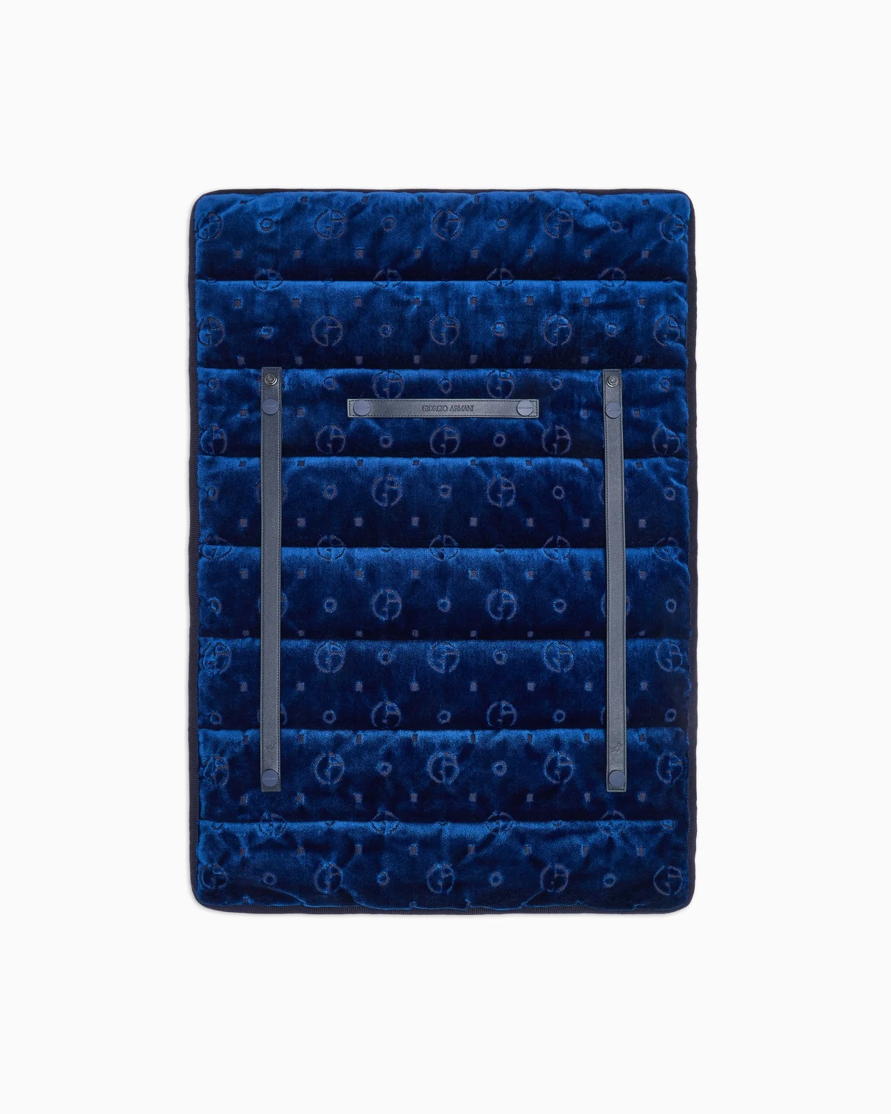 Travelling in style becomes luxurious even for your small four-legged friends with this plush velvet mat, available in two collection shades. This style, which can be folded up and closed with two practical leather straps, is embellished with an opulent monogram jacquard motif, recalling other selections in the pet capsule collection. This accessory is part of the Poldo x Giorgio Armani collection, the first capsule collection entirely dedicated to our four-legged friends, combining the brand’s unmistakable style with functional fabrics and designs. A selection full of must-have accessories designed to pamper pets during moments of relaxation and accompany them on strolls and trips to discover the city. Collection velvet with all-over GA monogram Removable Washable Matching smooth leather strap fastening with press studs Customised with small leather tag with embossed Giorgio Armani logo Padding Water-resistant treatment on the nylon part Size S: 58 x 42 cm Size L: 100 x 70 cm Made in Italy Product Code: GX000003TE10652FB035