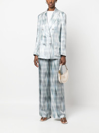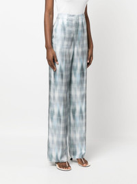 Prince of Wales silk trousers blue/white silk twill weave Prince of Wales check pattern gradient effect pressed crease belt loops concealed front fastening two side slit pockets two rear welt pockets Made in Italy Composition Silk 100% SIZE & FIT Model measurements Height 5 ft 10 in(1.77 m) Bust/Chest 29.92 in(76 cm) Hips 34.25 in(87 cm) Waist 23.62 in(60 cm)