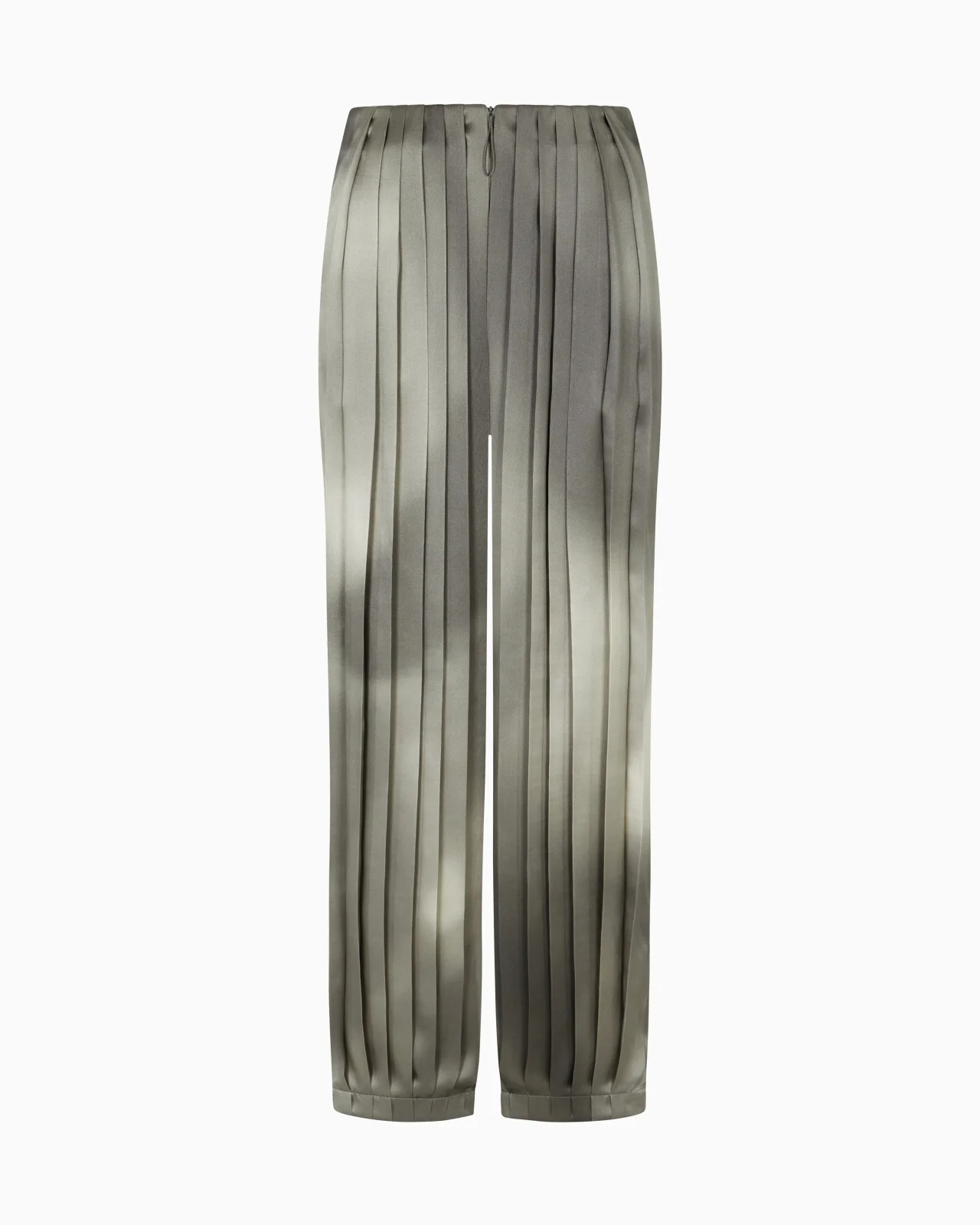 Refined trousers made from silk satin, featuring a pleated front motif. A distinctive offering with a front zip fastening and stitched trim at the hem, designed to elegantly dress up the feminine silhouette without constraints. Embellished with a gradient print, they are perfect with a relaxed-fit top or shirt for sophisticated, chic looks. Smooth waistband Front zip closure Two slant pockets Edged hem Unlined Length: 100 cm Made in Italy Product Code: GW001972TE16741F6122